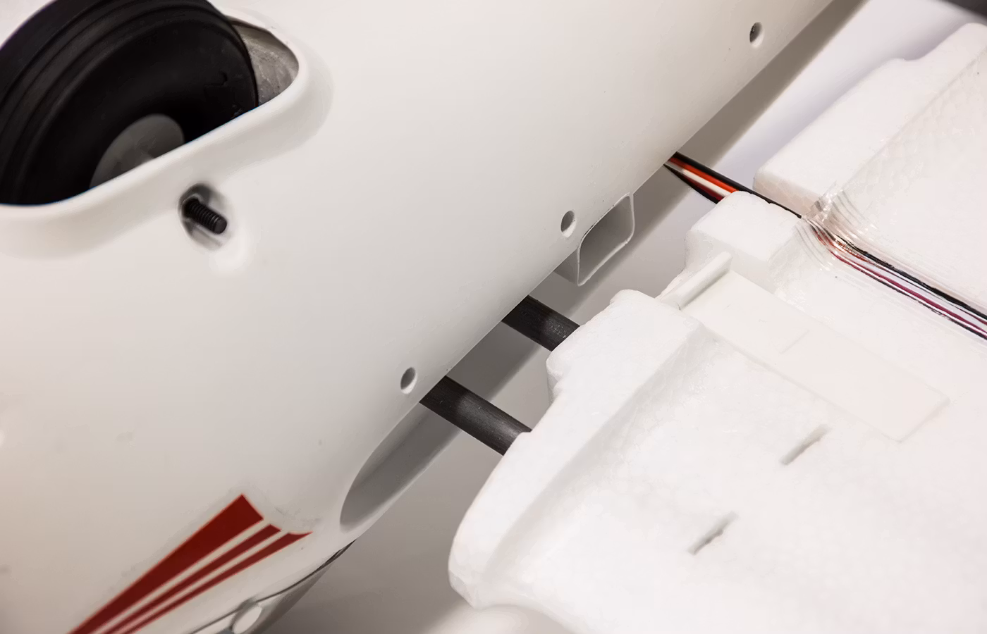 Hele modellen skrus sammen - enkelt selv for nybegynnere. Modellen er nesten ferdig bygget - kun enkel montering gjenstår. For å unngå hakk og andre transportmerker i EPO-overflaten så er ikke linker og rorhorn skrudd på plass. Disse tar det bare noen minutter å skru på plass.