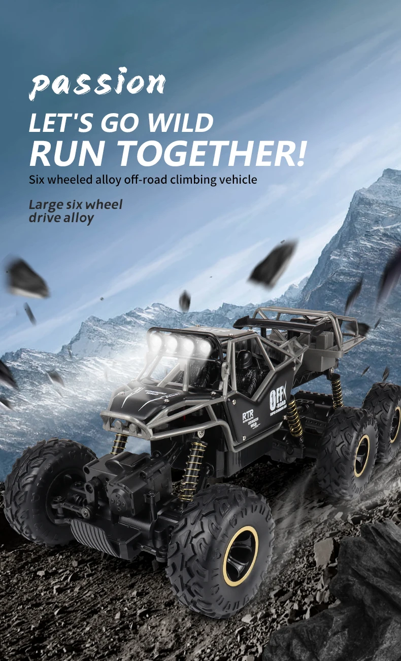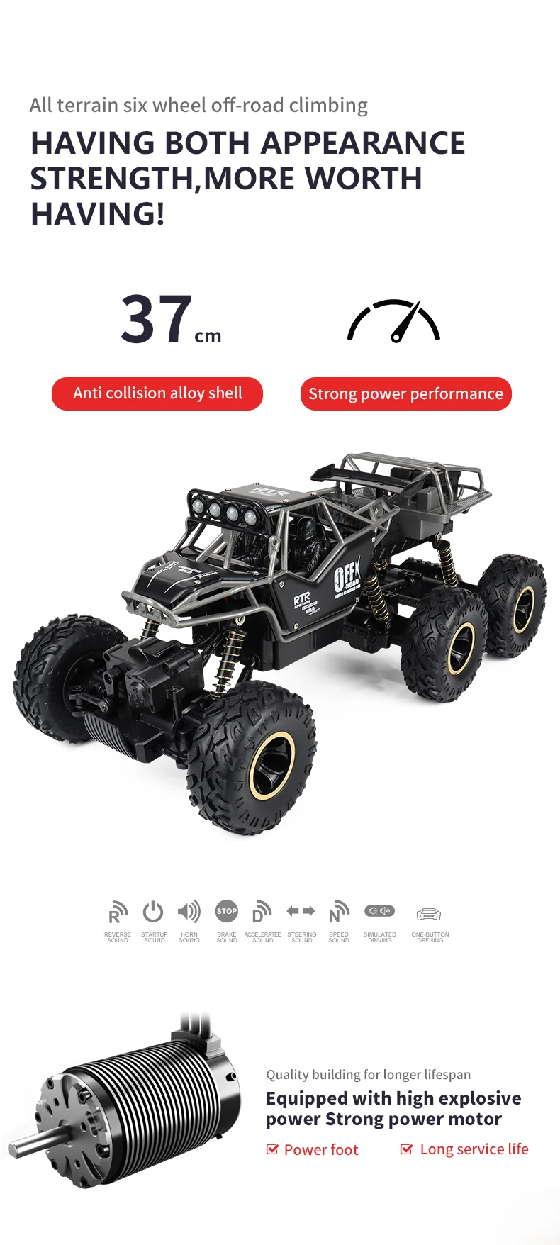 Tøff radiostyrt morsom rimelig buggy crawler, ypperlig for junior, inne som ute. Bilen er 37 cm lang og med 6WD kommer den seg godt frem over alt.