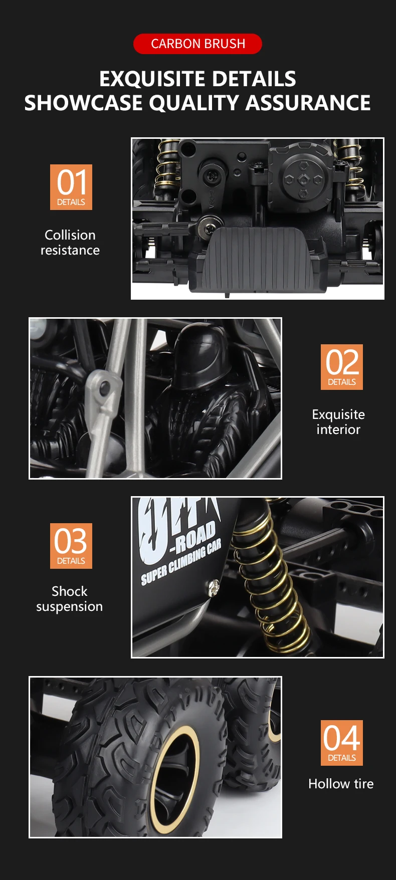 - Built-in shock absorption system, four-wheel independent suspension system, shockproof, better protect the truck.