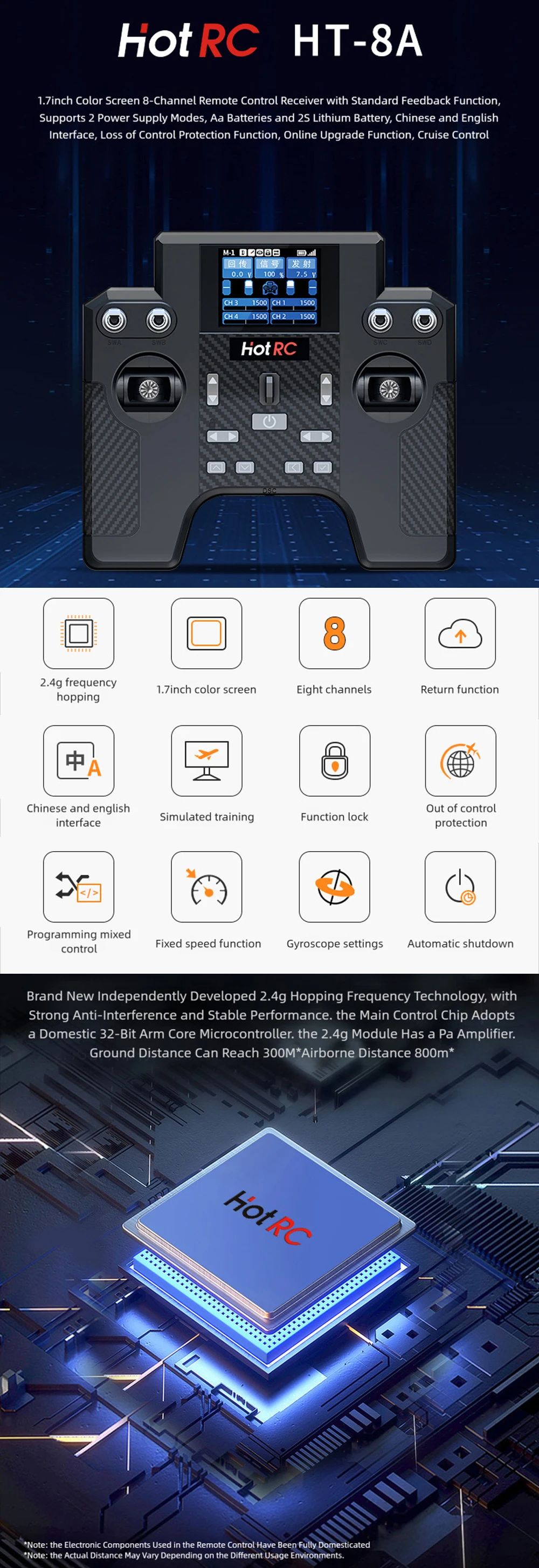 HT-8A 1,7" screen 2.4G 8CH FHSS TX med 8 kanals mottaker