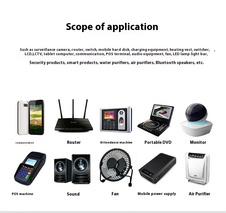 1. All use imported electronic components, and the circuit board has overvoltage, overcurrent, and short-circuit protection functions;