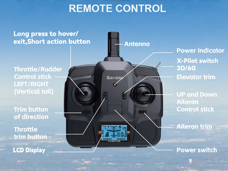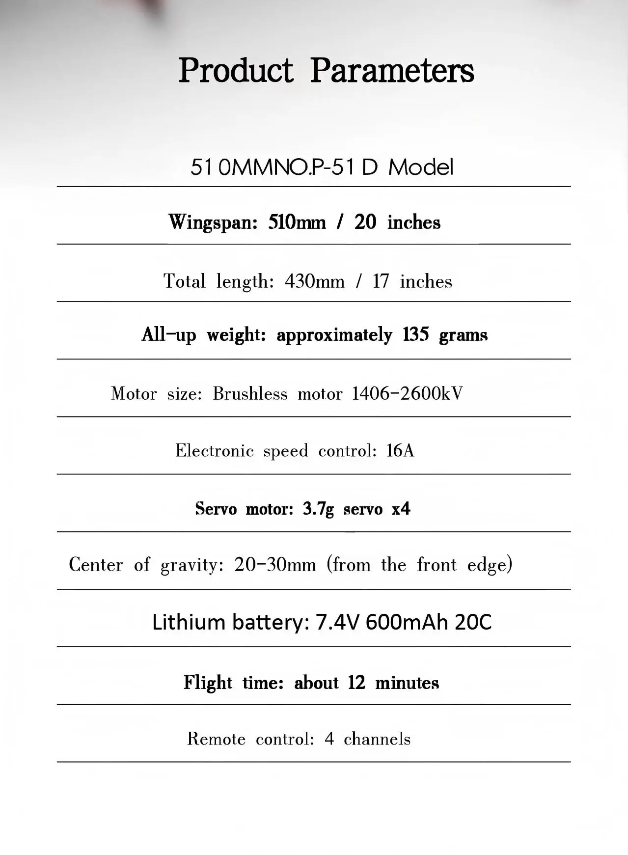 Featured strong powerful over-grade motor allows easy controlling to do aerobatic flying.