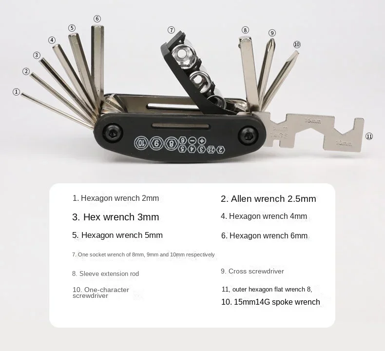 2mm ,2.5mm ,3mm ,4mm ,5mm ,6mm Allen Umbraco wrench each one;